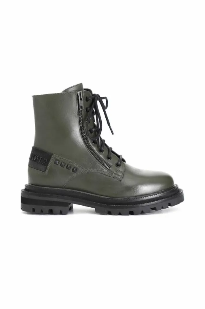 Tronchetto donna allacciato in pelle arricchito sia da una cerniera in metallo da borchie e da un particolare nastro logato cafènoir. il soletto è in pelle.