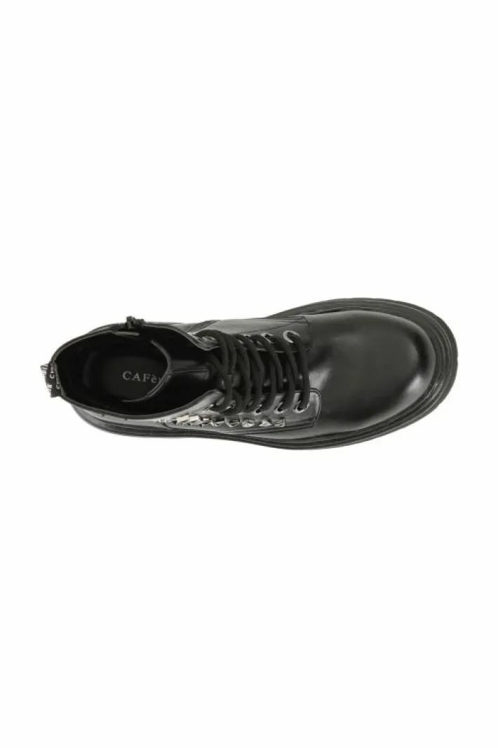 Tronchetto donna allacciato in similpelle arricchito da borchie di tendenza.