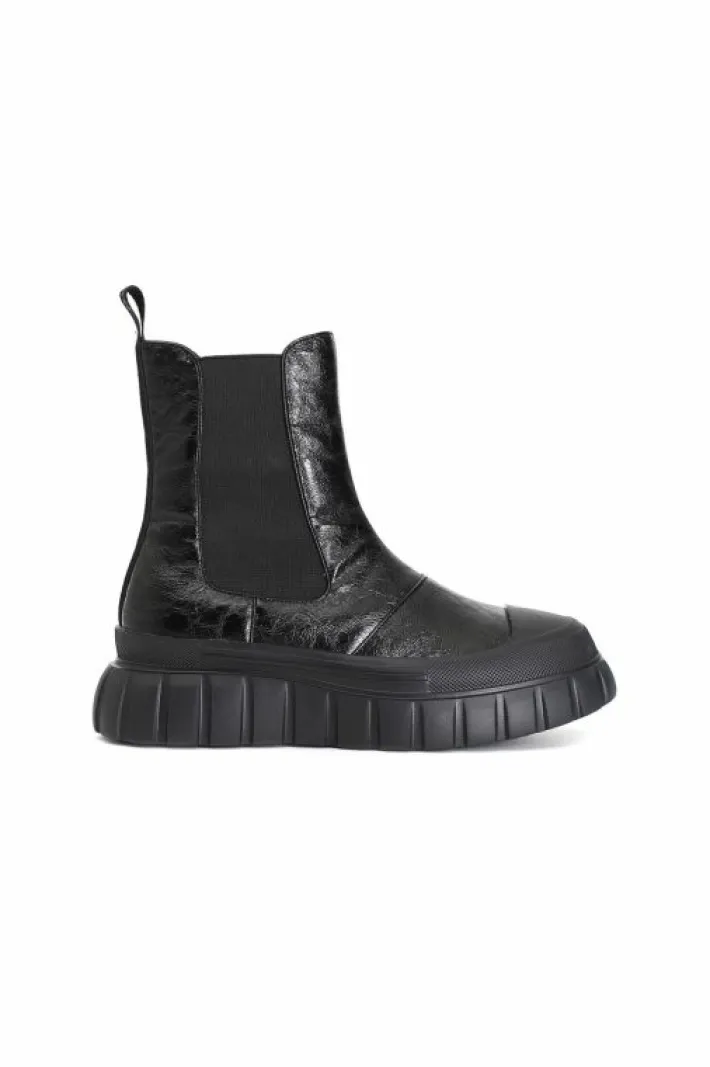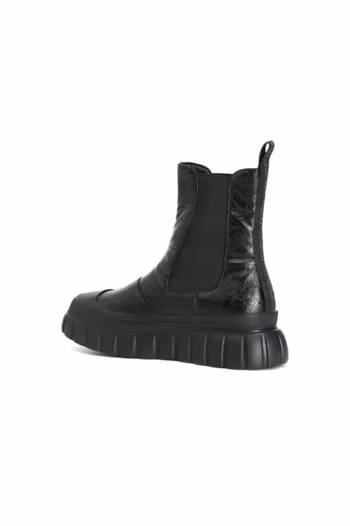 Tronchetto dallo stile sportivo con elastici sulla parte laterale della calzatura per agevolare la calzata. tomaia in tessuto laminato con imbottitura trapuntata. suola rialzata caratterizzata da un particolare motivo rigato.