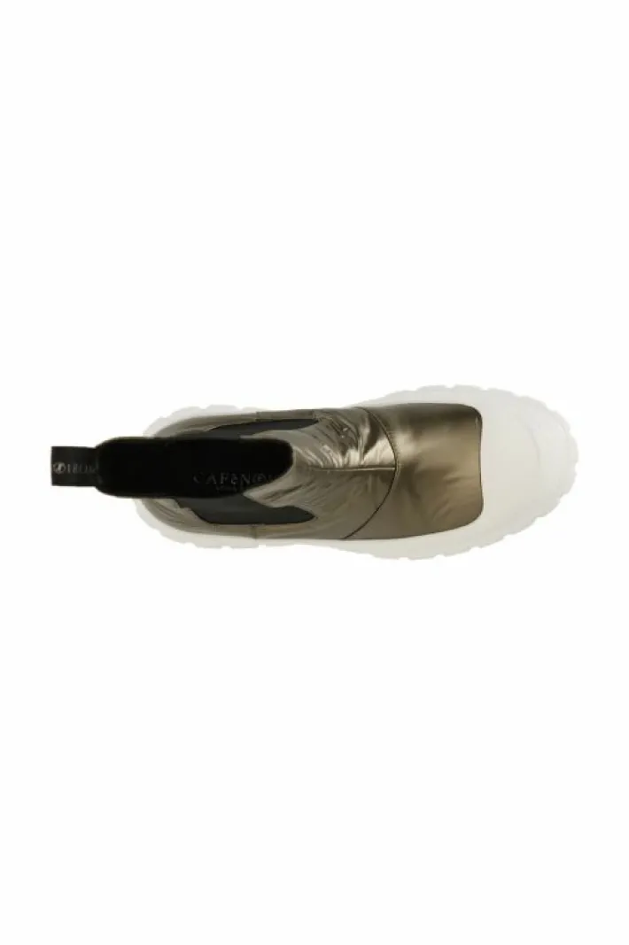 Tronchetto dallo stile sportivo con elastici sulla parte laterale della calzatura per agevolare la calzata. tomaia in tessuto laminato con imbottitura trapuntata. suola rialzata caratterizzata da un particolare motivo rigato.