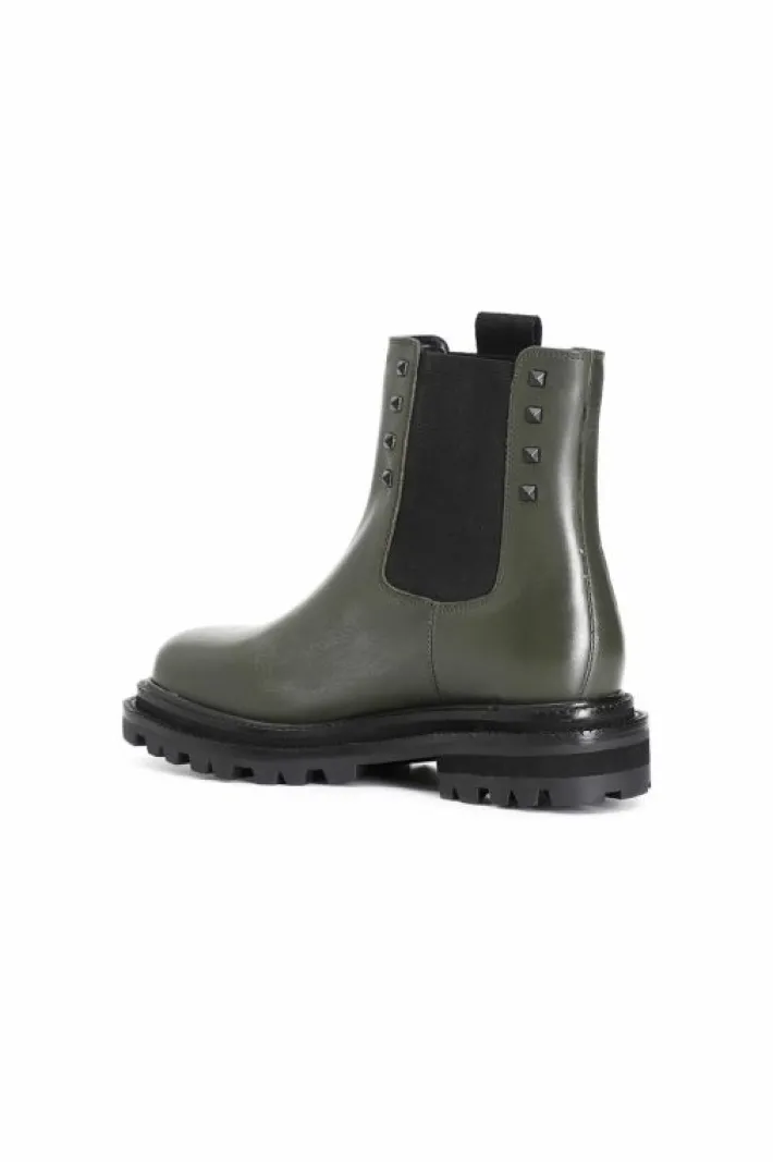 Tronchetto donna in pelle con elastico arricchito da un particolare nastro logato cafènoir e borchie di tendenza. il so…