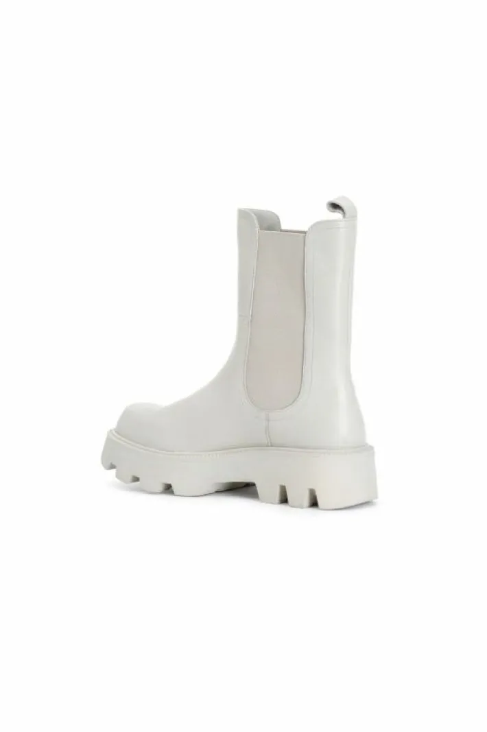Tronchetto monocolore da donna in pelle con elastico laterale. soletto in pelle e suola carro armato.