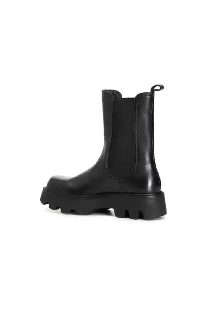 Tronchetto monocolore da donna in pelle con elastico laterale. soletto in pelle e suola carro armato.