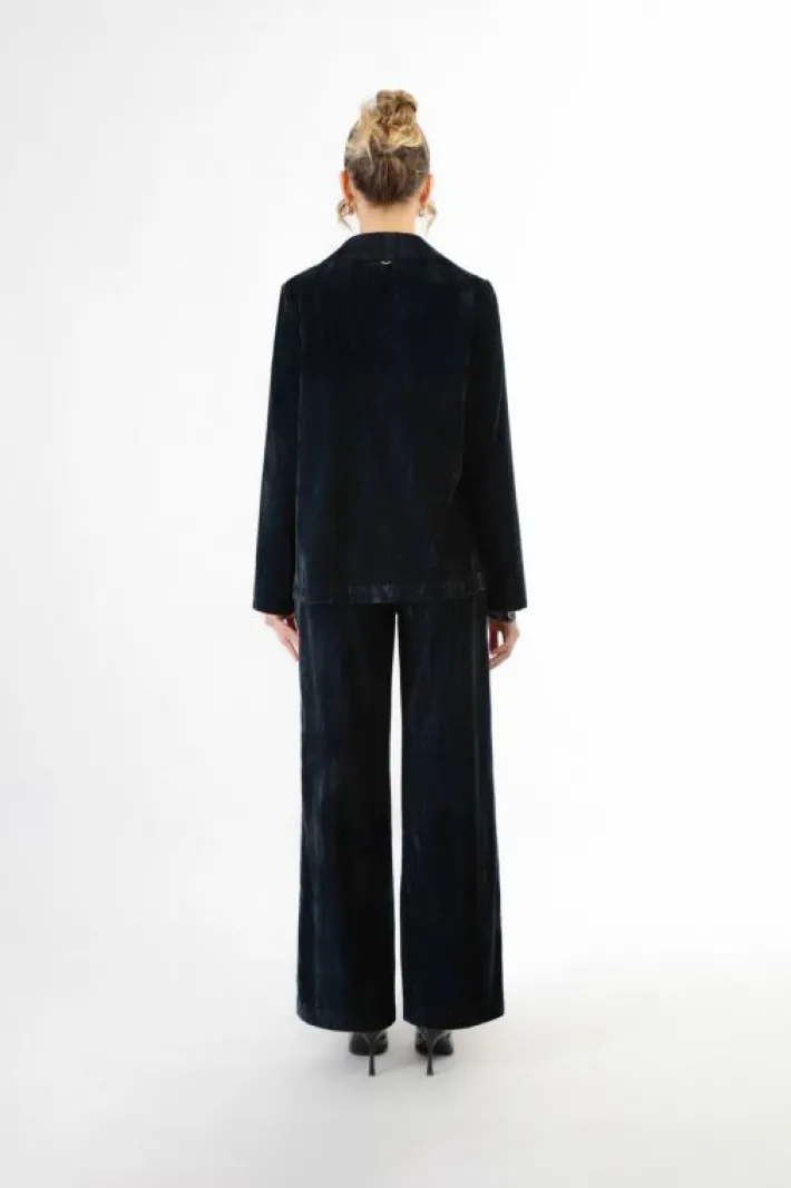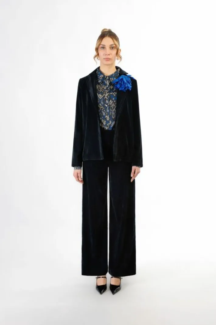Comodo blazer sfoderato e senza abbottonatura realizzato in velluto operato dall’elegante effetto cangiante. capo senza tempo che emana eleganza e stile.
