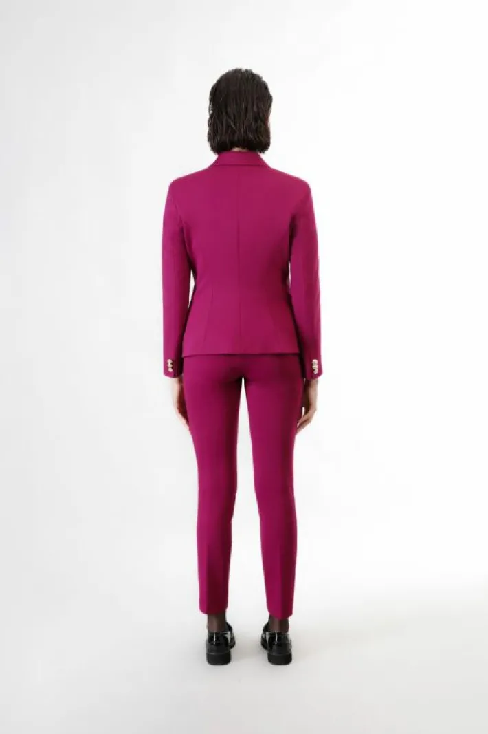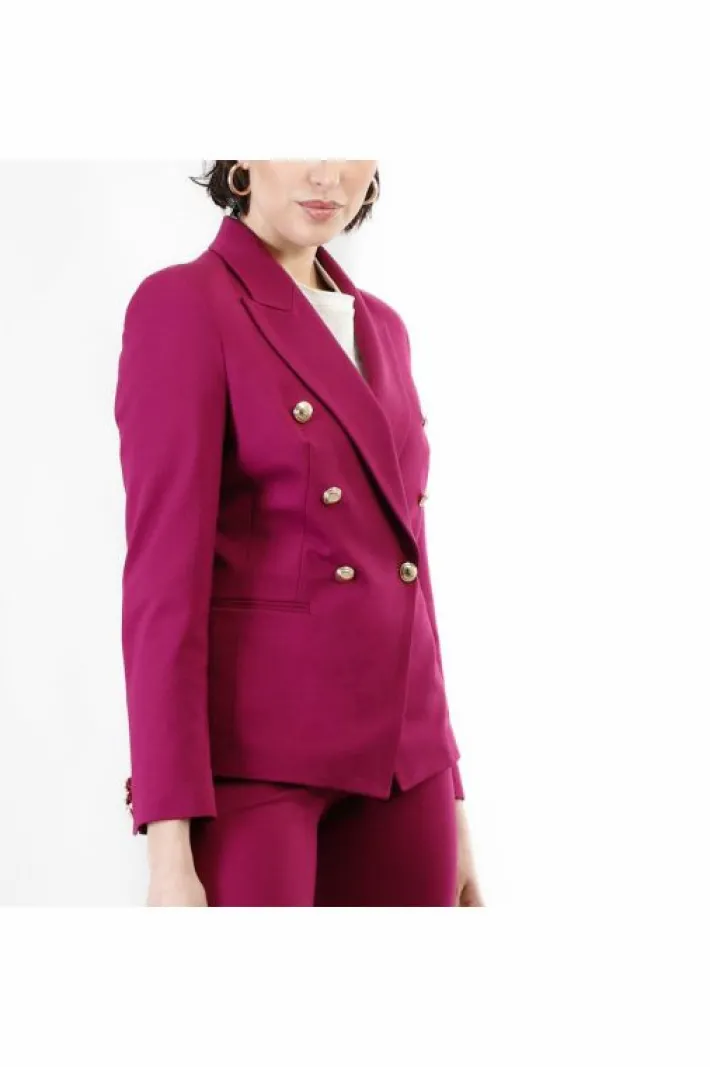 Giacca doppiopetto con collo a lancia e con bottoni oro realizzata in tessuto elasticizzato. capo perfetto per un outfit da ufficio o per la sera.