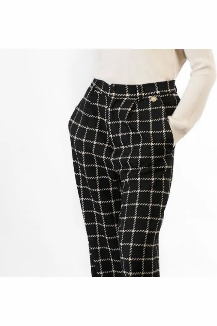 Pantaloni dalla vestibilità wide con pieghe davanti e vita posteriore elasticata. realizzati in tessuto jacquard a quadri. dallo stile sofistificato da abbinare alla giacca in coordinato.