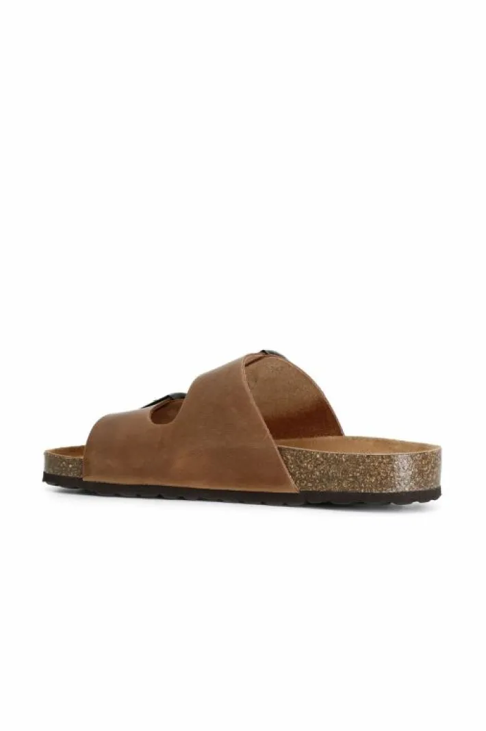 Ciabatta uomo in pelle. doppia fascia con fibbie. comodo fussbett.