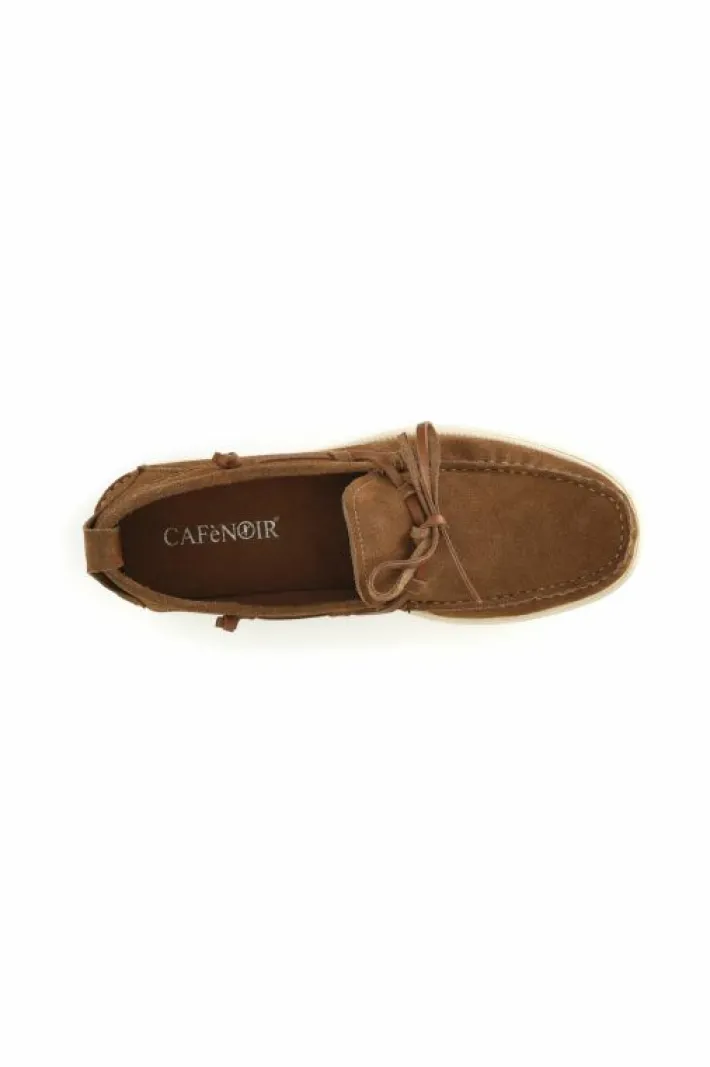 Mocassini uomo in pelle scamosciata con passanti e fiocco. soletto in pelle.