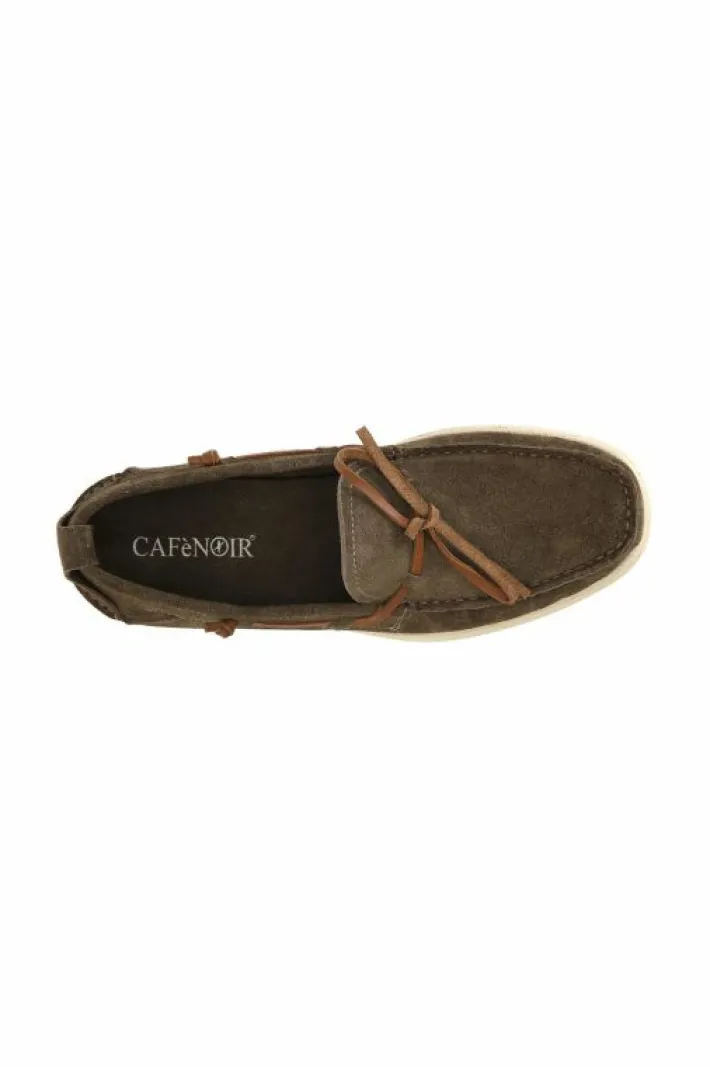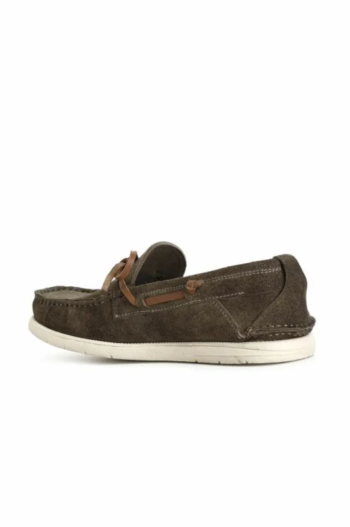 Mocassini uomo in pelle scamosciata con passanti e fiocco. soletto in pelle.