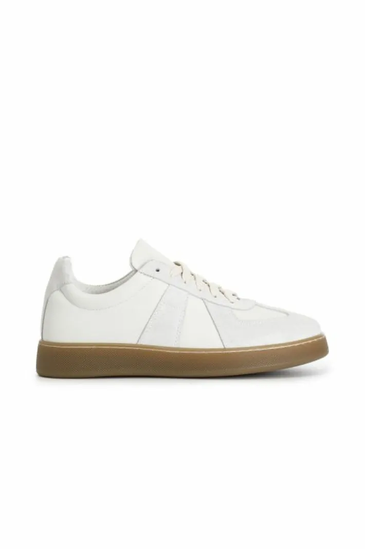 Sneakers allacciate uomo in pelle e scamosciato. soletto in pelle.