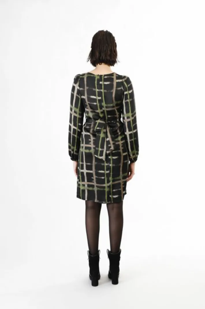 Abito dalla linea dritta in viscosa stampata. maniche lunghe morbide con bottoni sui polsi. delineato il punto vita graz…