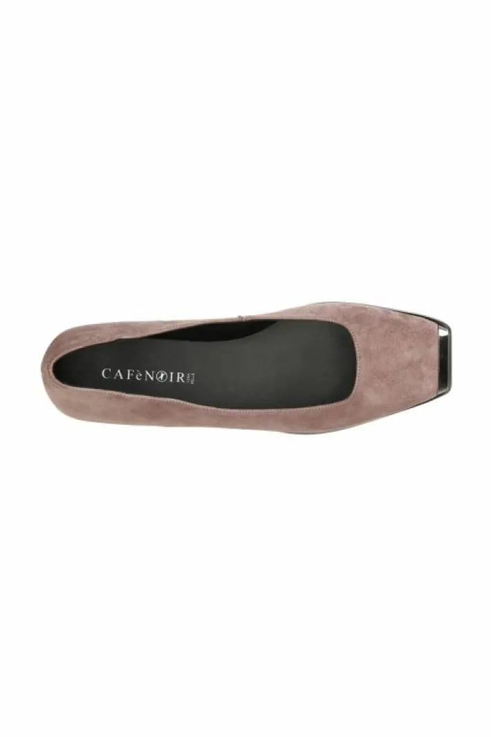 Ballerina in camoscio con puntale metallico. fodera e soletto sono in pelle. tacco alto 15 mm.