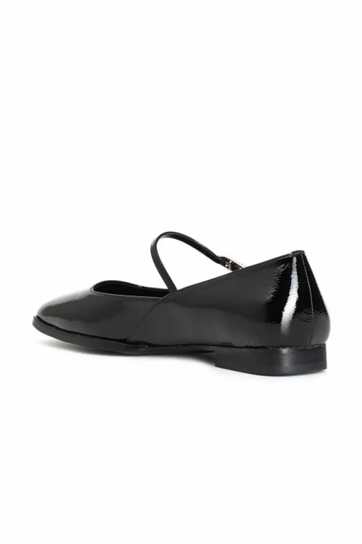 Ballerina in naplak con laccino e fibbia personalizzata. fodera e soletto sono in pelle. tacco alto 15 mm.