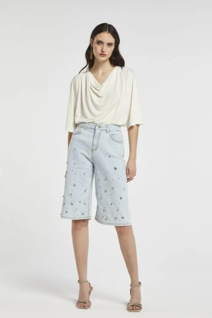 Bermuda di jeans vestibilità regular realizzati in una tela comfort. applicazione di preziosi strass sul davanti