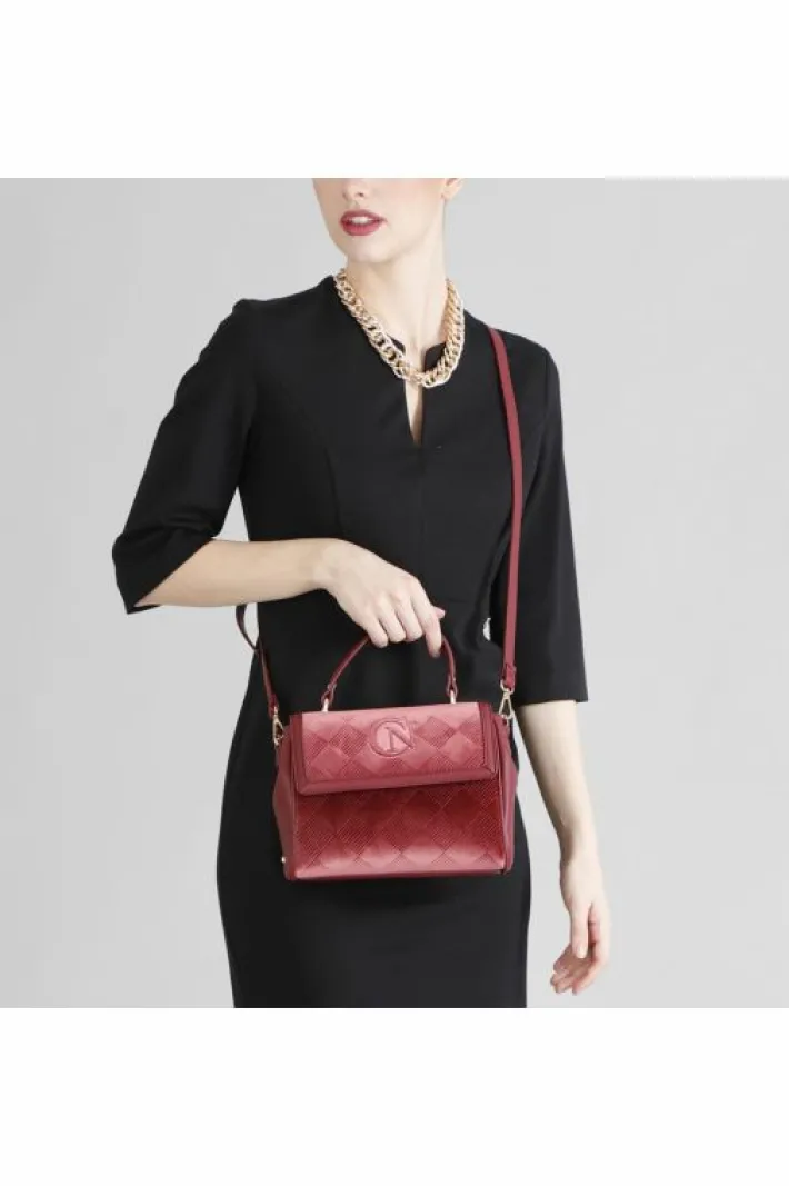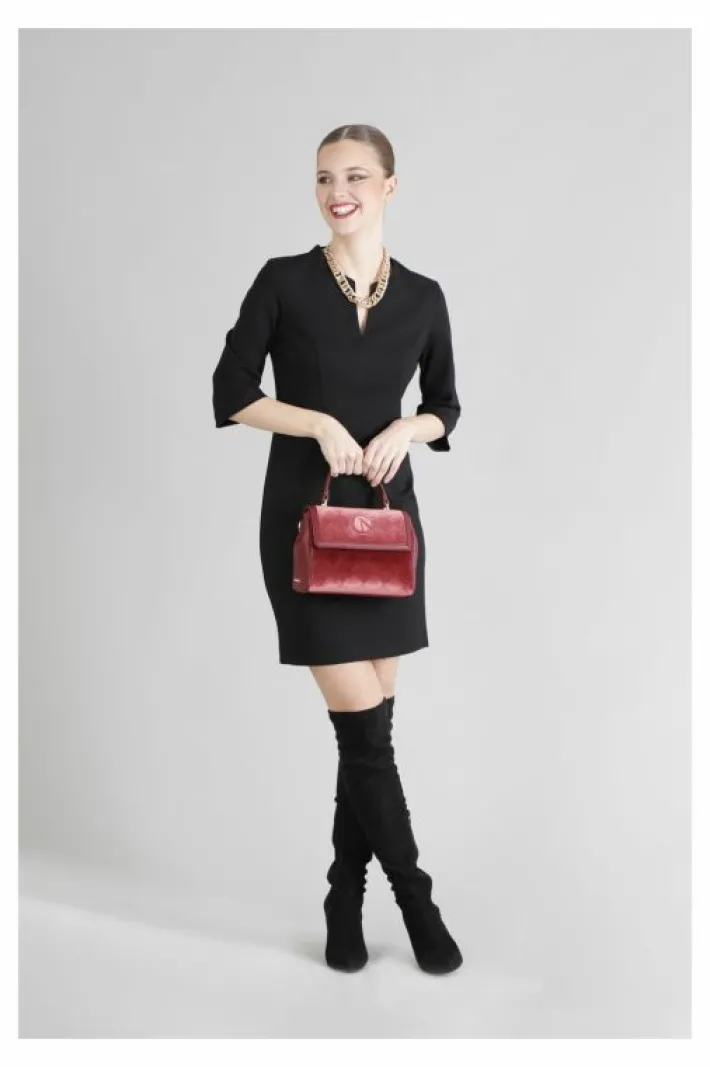 Borsa a mano con pattina in velluto con logo embossed. doppio scomparto e taschino interno con zip. placchetta metallica con logo cafènoir sulla parte laterale. borsa dotata di tracolla regolabile.