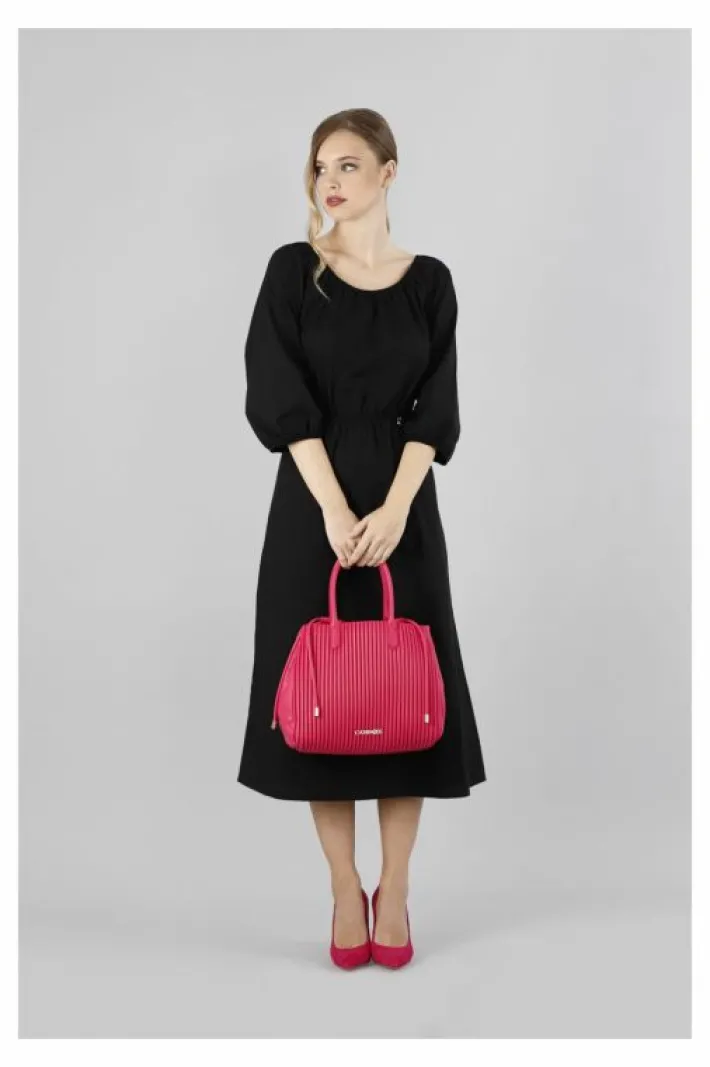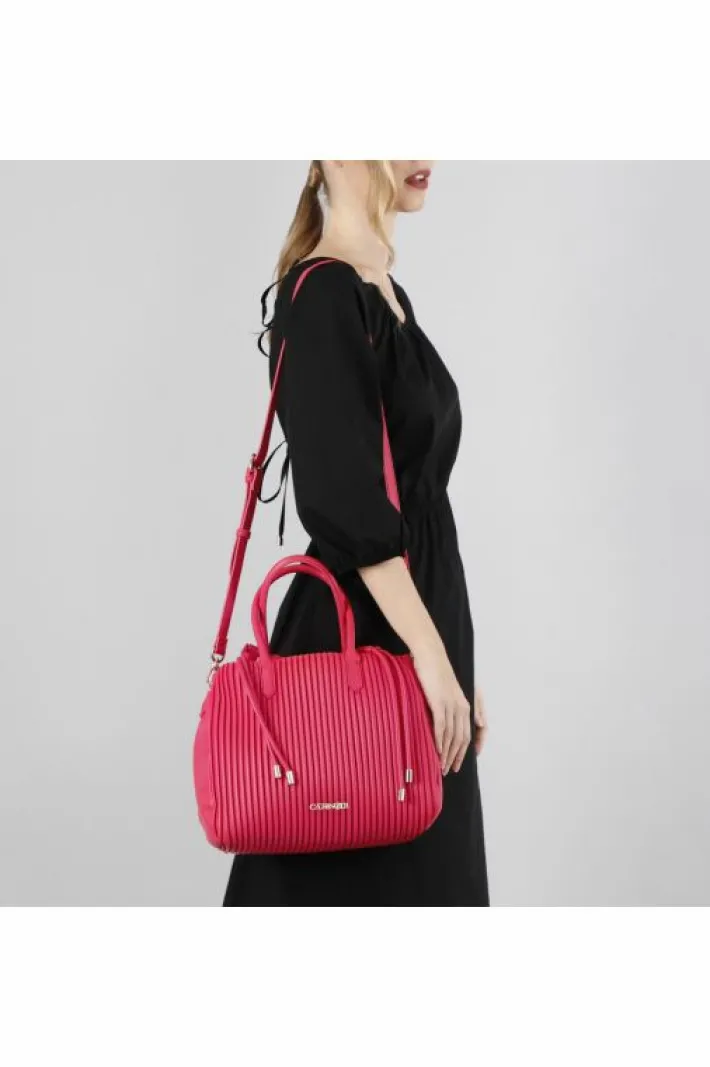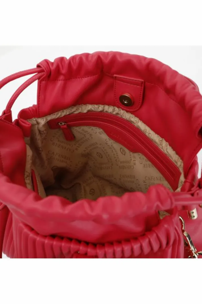 Borsa a secchiello a lavorazione plissé con manici tubolari. chiusura a coulisse. borsa dotata di tracolla.