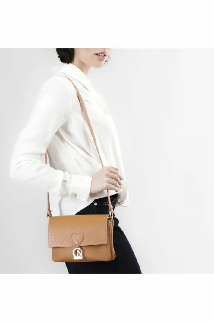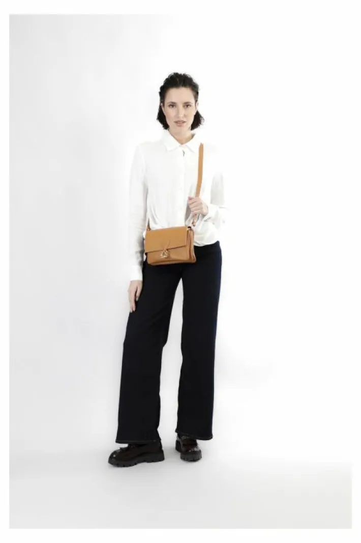 Borsa a spalla piccola con pattina in pelle dollaro con tracolla regolabile logo in metallo sulla pattina. chiusura con calamita.