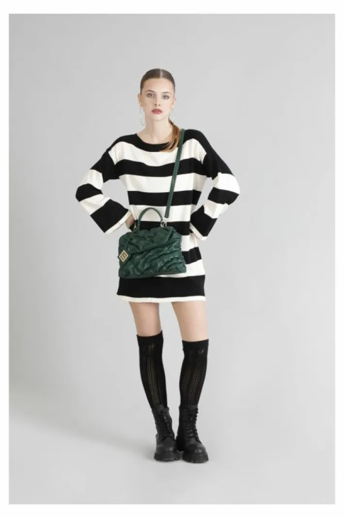 Borsa con pattina con lavorazione goffrata con pendete quandrato logato cafènoir. chiusura con calamita.