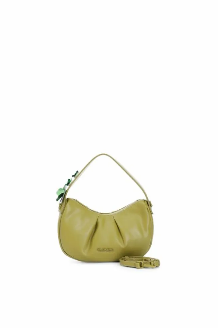 Hobo in materiale sintetico liscio imbottito effetto puffy con applicazione di fiori in paillettes. dotata di tracolla removibile chiusura superiore con zip e scomparto unico.