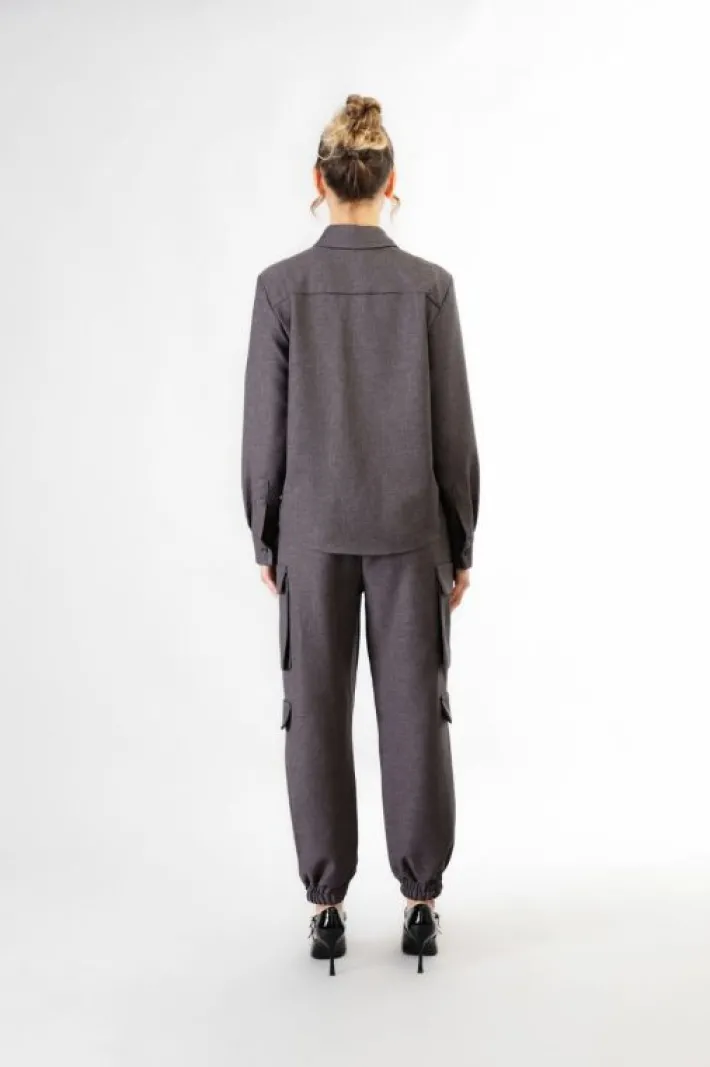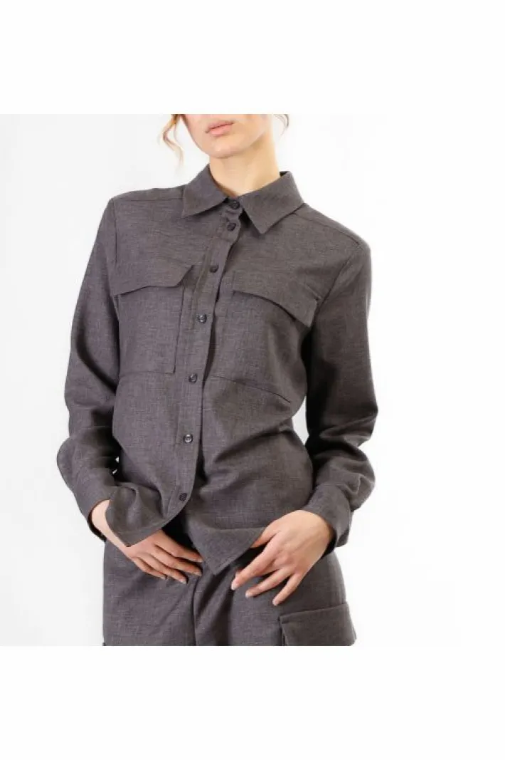 Camicia con tasche a toppa e maniche lunghe in tessuto dalla costruzione in grisaglia. must-have del guardaroba da indossare il giorno con un paio di pantaloni in coordinato o jeans.