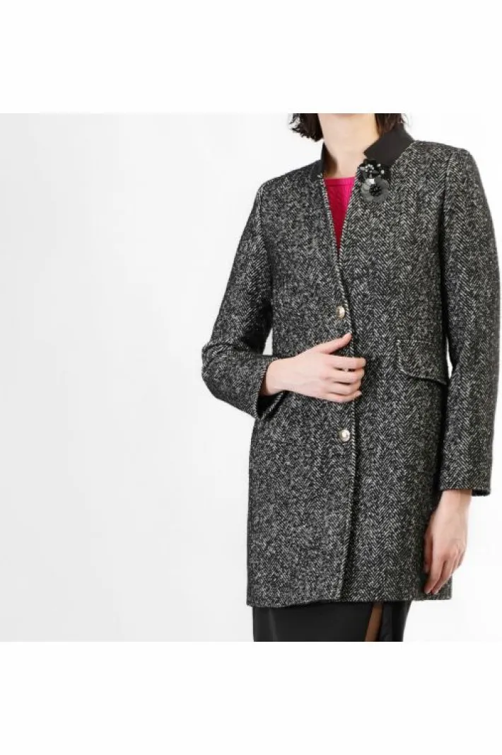 Cappotto dritto monopetto in tessuto spigato. chiusura con bottoni. capo elegante e funzionale.