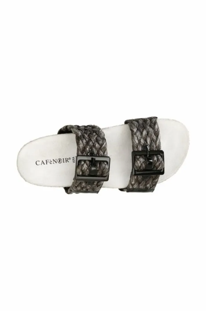 Ciabatte in raffia intrecciata e con comodo footbed.