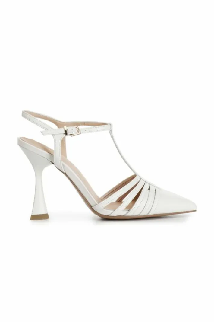 Décolleté a “t” in nappa chiuse sul davanti aperte sul retro. comodo soletto imbottito in pelle. tacco a rocchetto alto 95mm e punta affusolata. un classico senza tempo che non può mancare nel guardaroba.