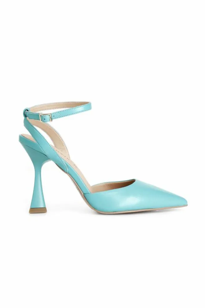 Décolleté chiuse sul davanti in nappa con laccio alla caviglia. comodo soletto imbottito in pelle. tacco a rocchetto alto 95mm e punta affusolata. un classico senza tempo che non può mancare nel guardaroba.