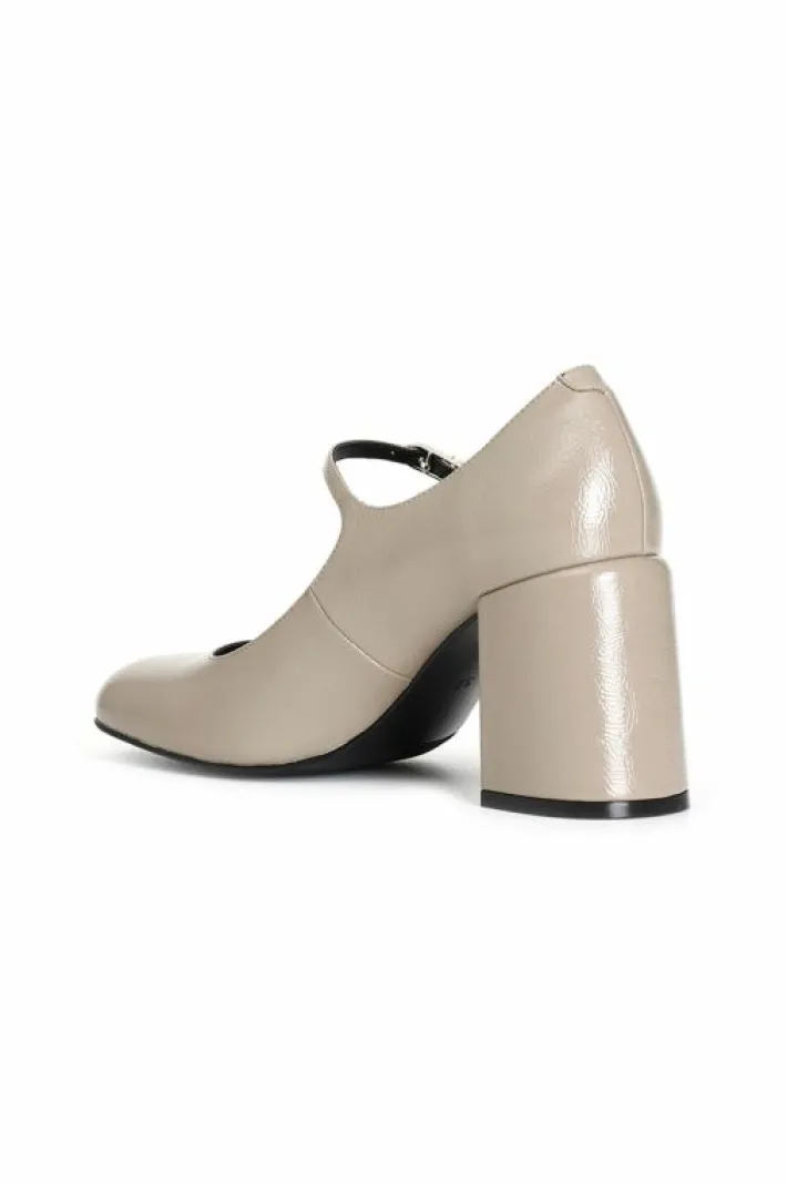 Décolleté in pelle naplak con cinturino e fibbia personalizzata. tacco fasciato alto 80 mm. il soletto è in pelle. ideale in abbinamento a molteplici look da mattina a sera.