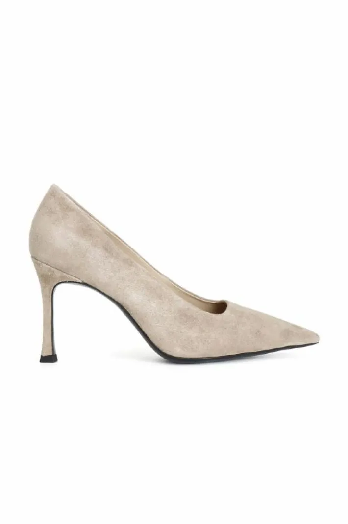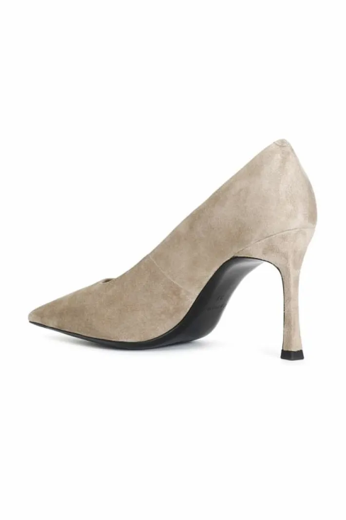 Décolleté in camoscio. tacco fine alto 87 mm. forma sfilata. fodera e soletto sono in pelle. calzatura dallo stile elegante e femminile.