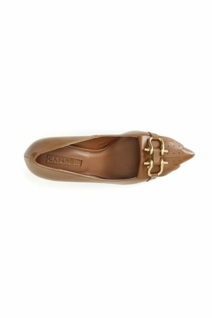 Décolleté in pelle con frange e morsetto. calzatura dalla forma sfilata. tacco alto 70 mm. il soletto è in pelle.