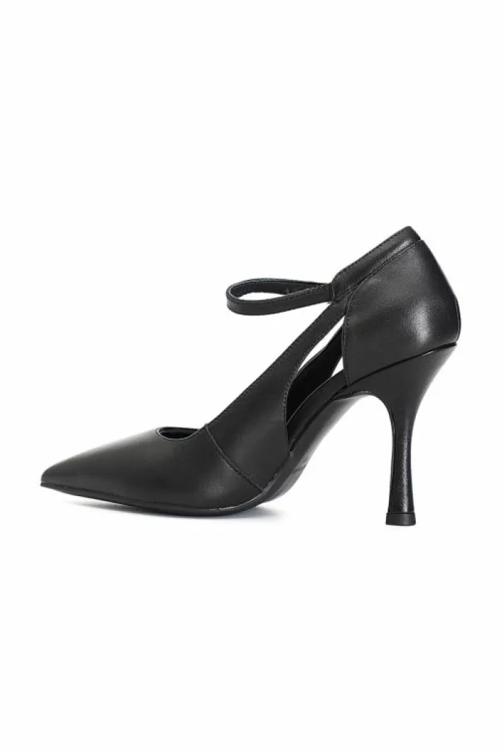 Dècollète in pelle con cinturino alla caviglia e tacco h. 90mm