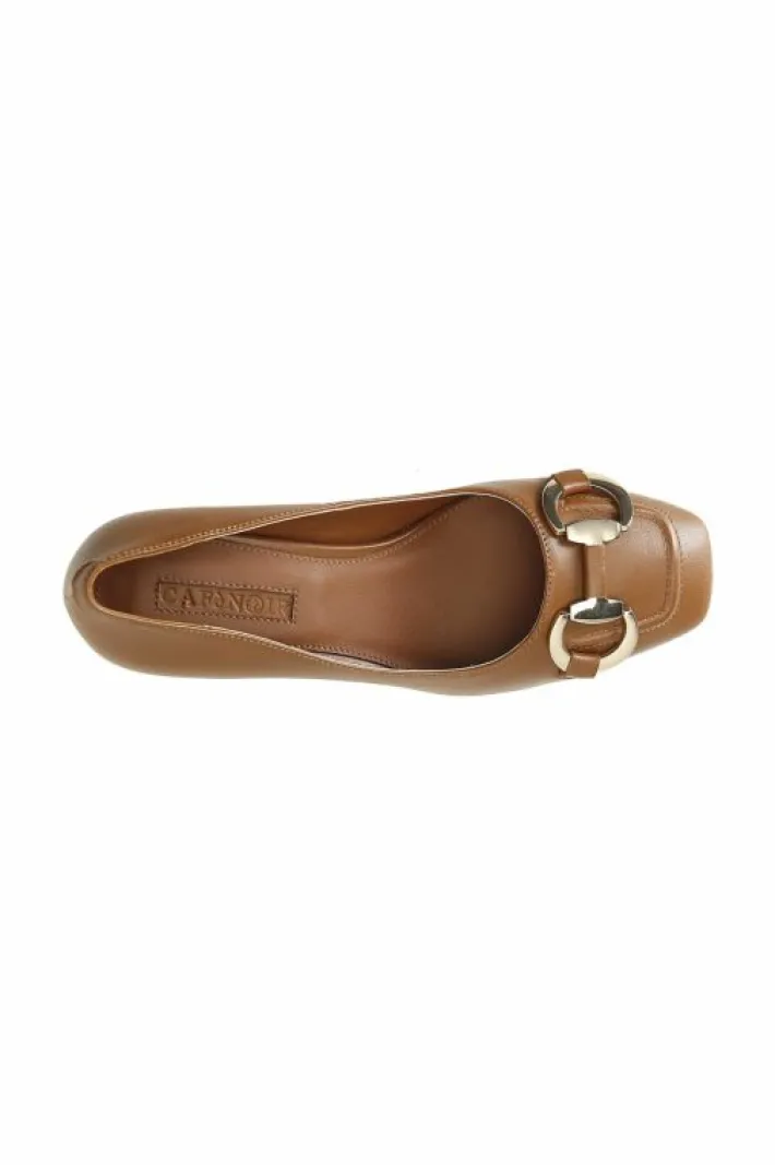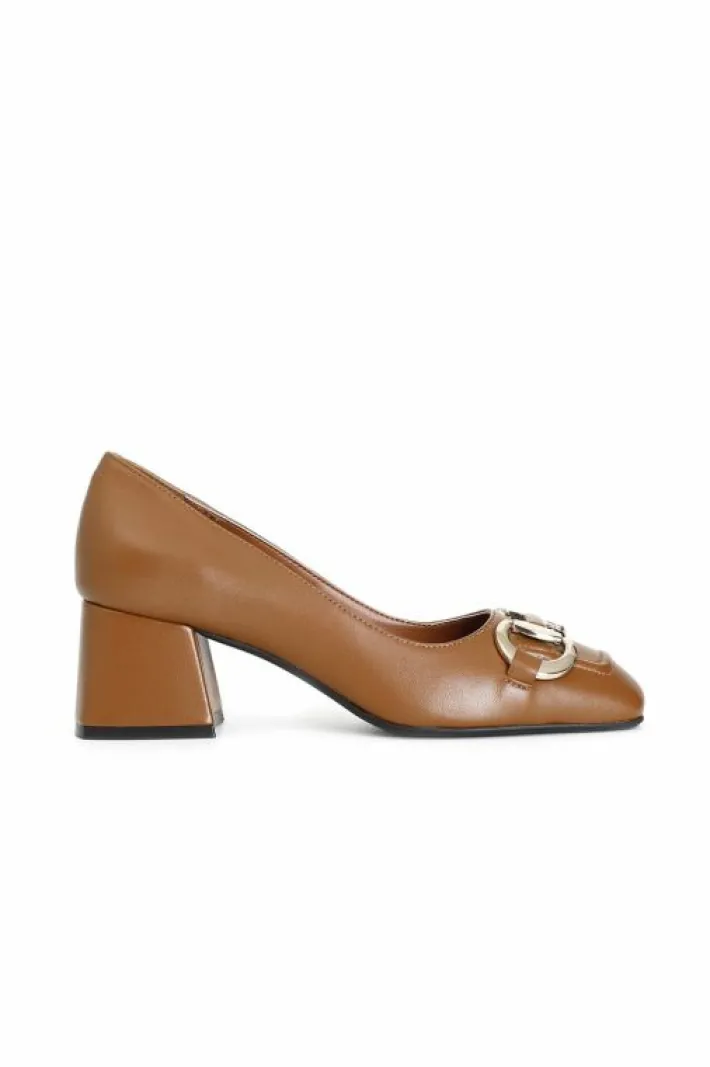Décolleté in pelle con morsetto. tacco spesso alto 60 mm. il soletto è in pelle.