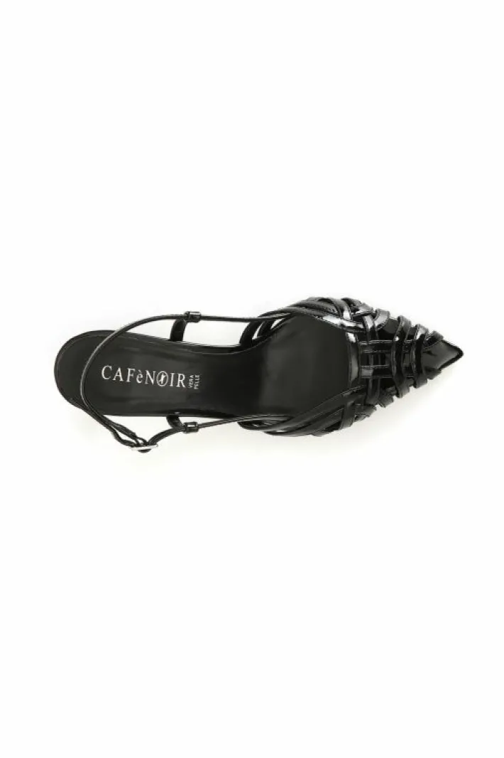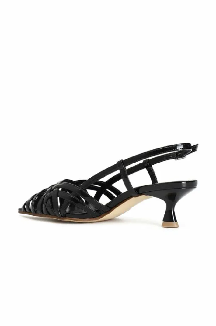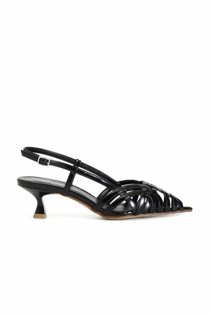 Décolleté con laccio dietro. tomaia a gabbia effetto vernice. forma sfilata. tacco a rocchetto alto 45mm. calzatura alla moda ma indossabile anche nel quotidiano per soddisfare le esigenze di uno stile di vita dinamico.