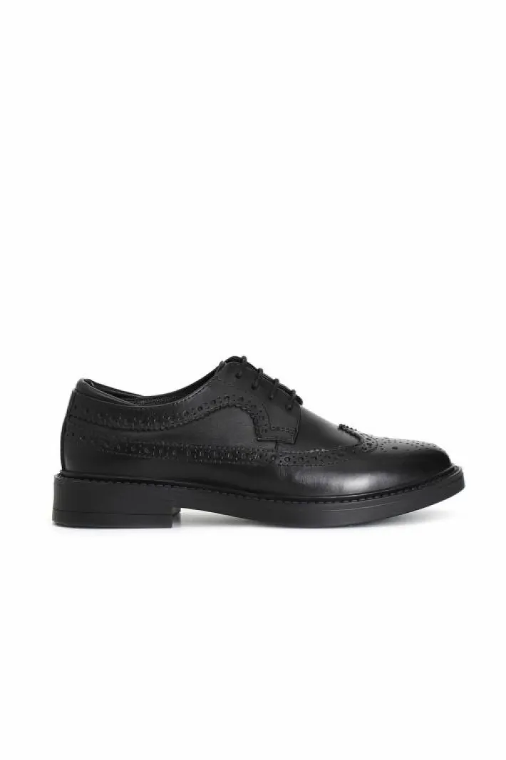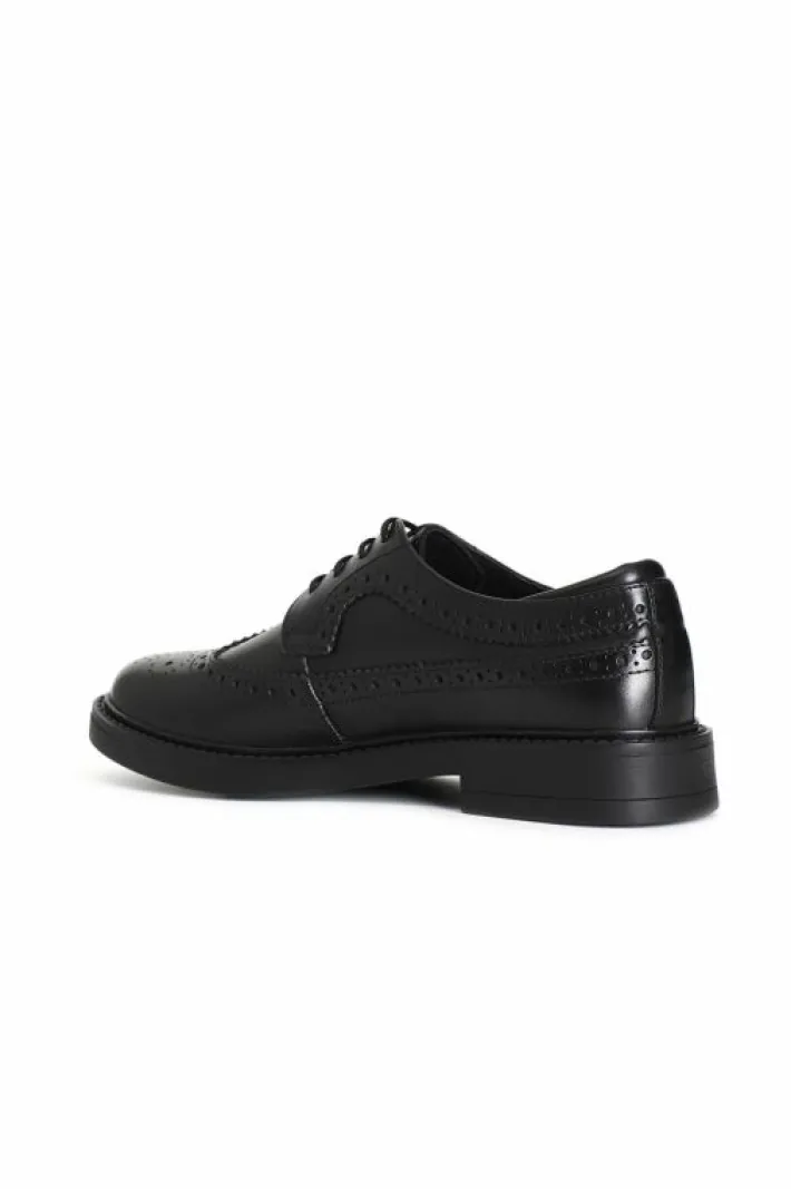 Derby da uomo allacciata in pelle stile oxford a coda di rondine. la fodera e il soletto sono in pelle.