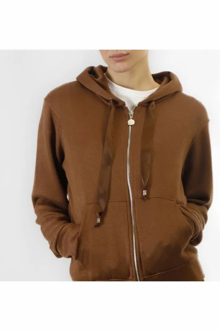 Felpa con zip e cappuccio realizzata in felpa di viscosa dalla mano calda. capo estremamente comodo funzionale e di tendenza