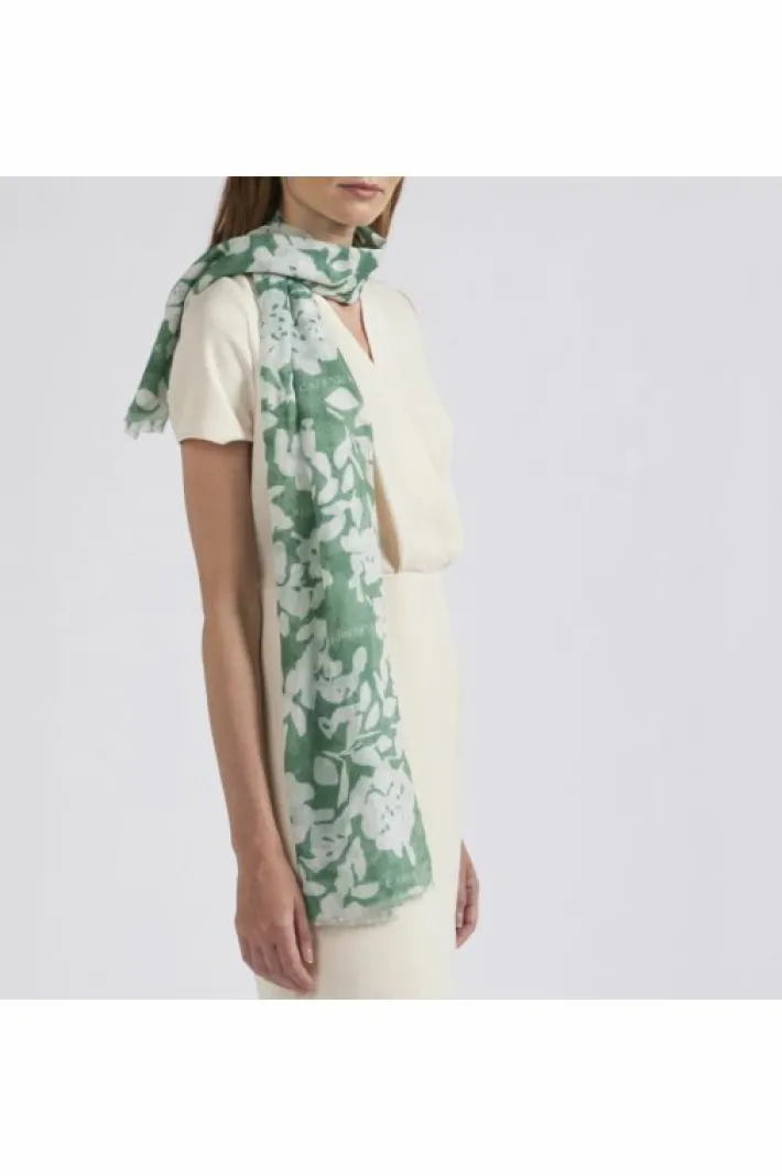 Foulard con stampa disegno floreale bicolor. misura 75x150cm. composizione: poliestere 80% viscosa 20%