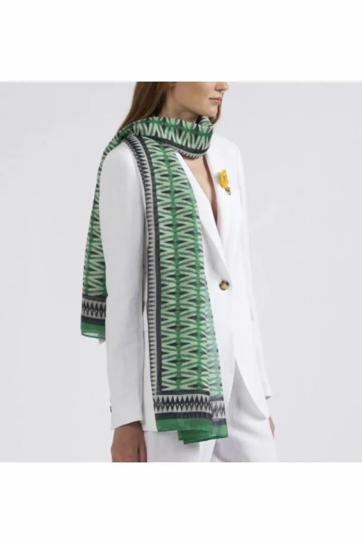 Foulard con stampa rombi con greca. realizzato in voile di poliestere. misura 190x90cm