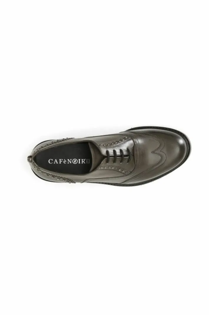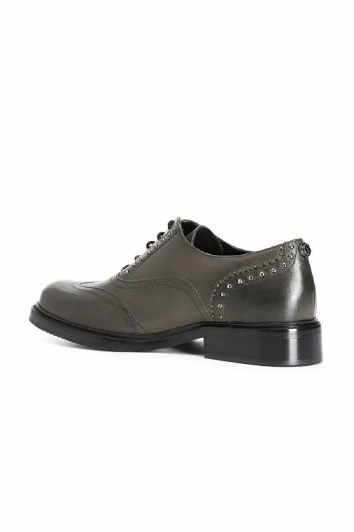 Francesina da donna allacciata realizzata in pelle e arricchita da microborchie cromate. il soletto è in pelle.
