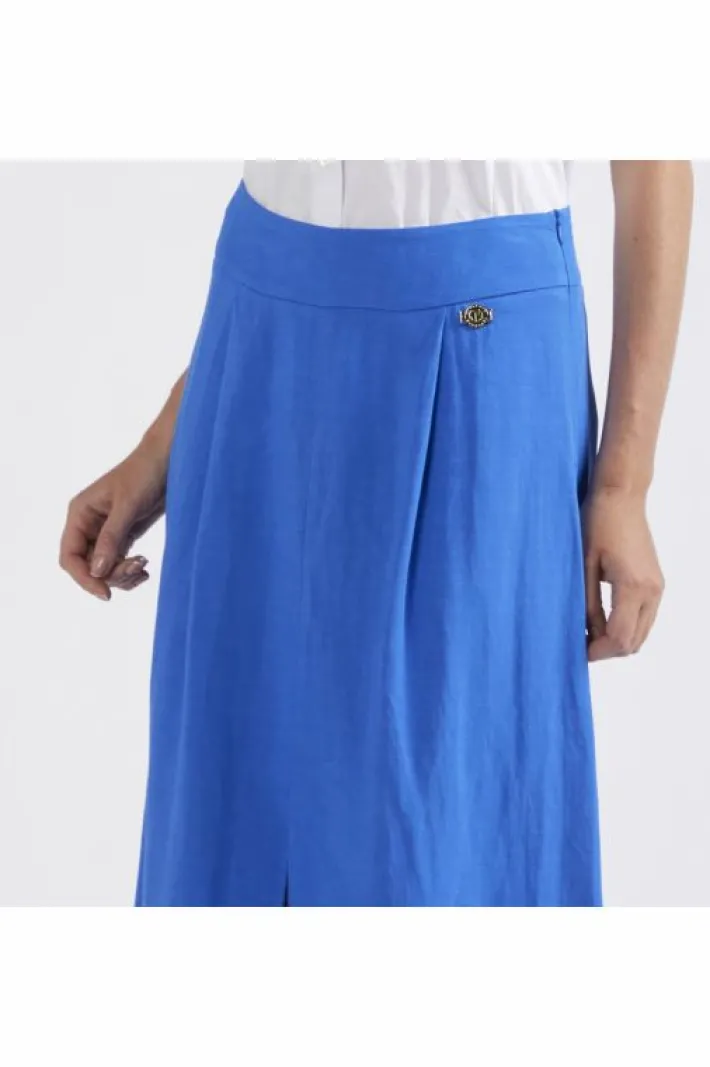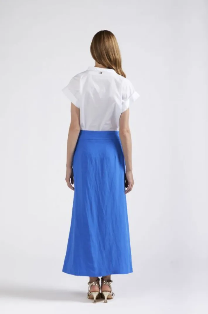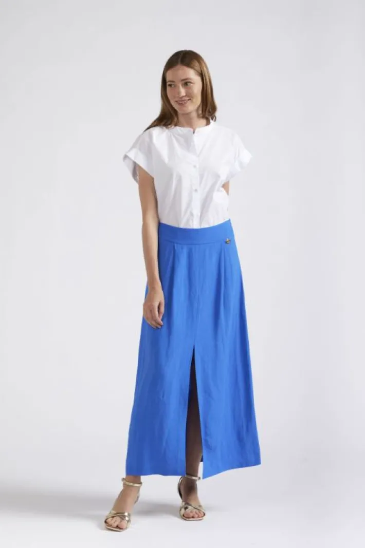 Gonna lunga con spacco sul davanti realizzata in tessuto misto lino. chiusura a zip laterale. semplice elegante moderna …