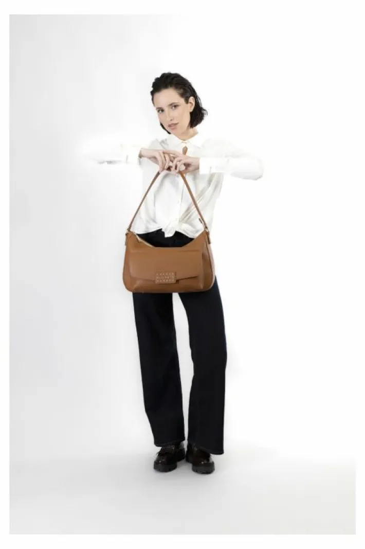 Shopping in materiale sintetico con tasca frontale con applicazione di logo e rivetti. unico scomparto interno con taschino con cerniera.