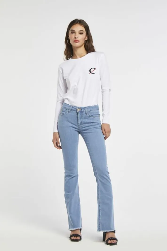 Jeans anna modello flare in tela superstretch con orlo sfrangiato