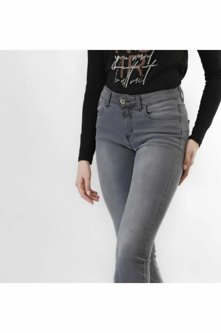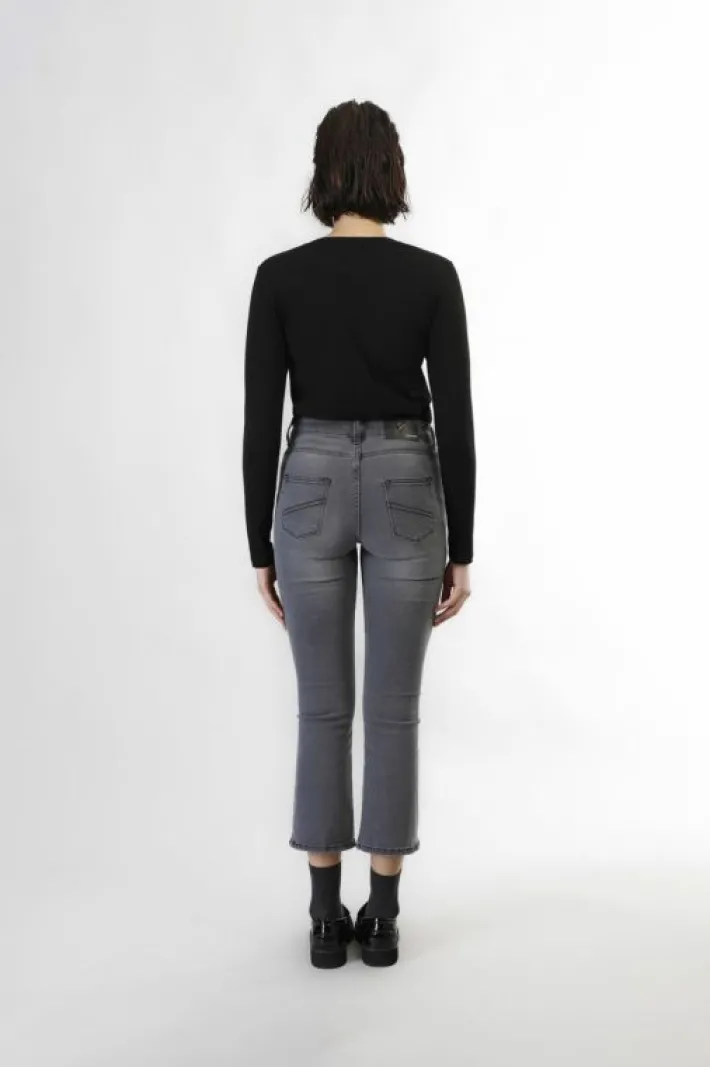 Jeans denim in tela super stretch dalla vestibilità cropped flare. passanti in vita cinque tasche chiusura con bottone …