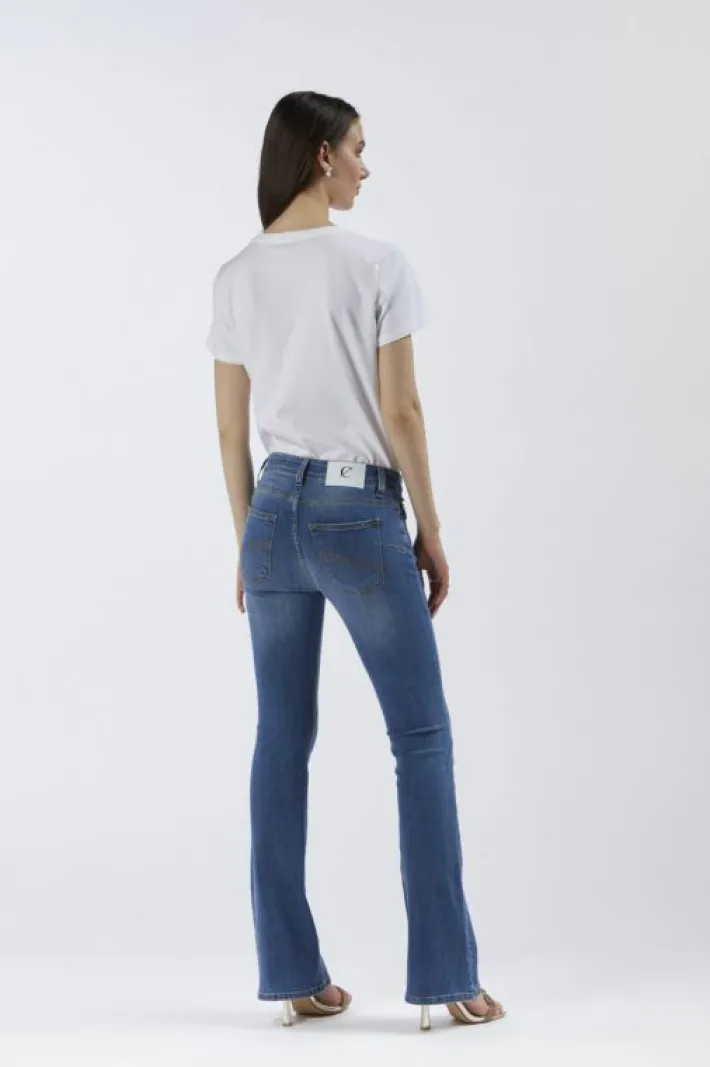 Jeans in tela denim super stretch dalla vestibilità flare.