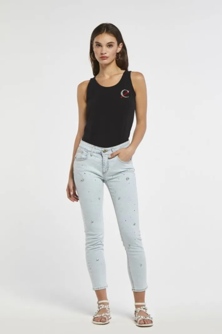 Jenas brigittte modello skinny in tela stretch elegante applicazione di strass alle gambe.