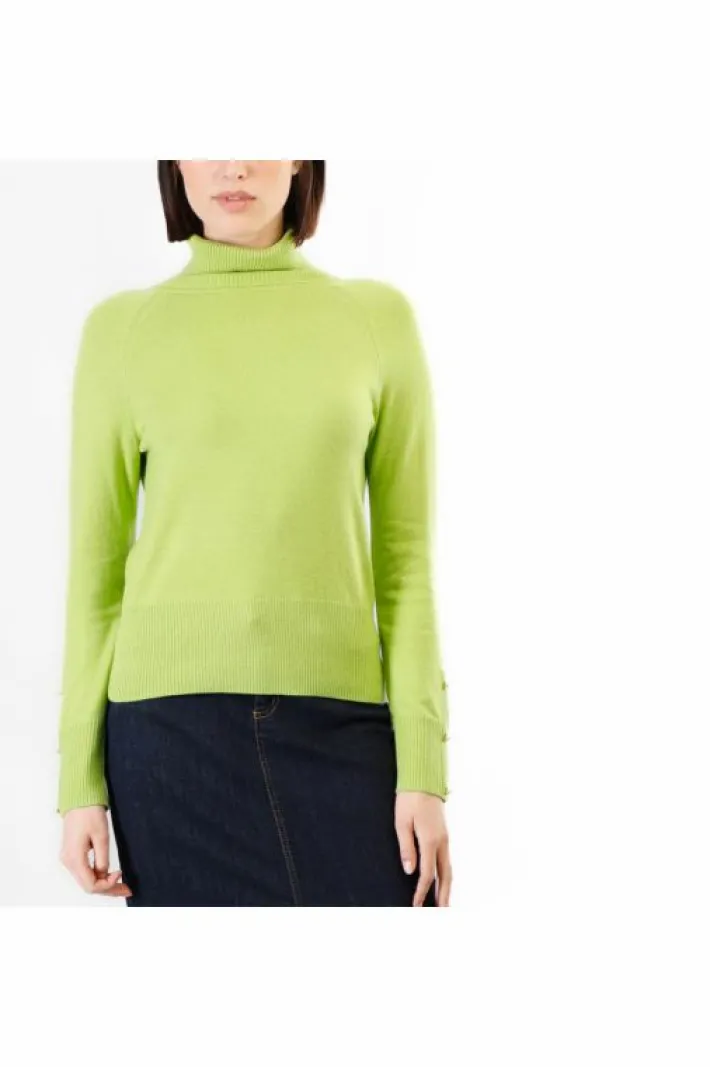Maglia con collo alto realizzata in filato misto cashmere. perfetta per essere indossato con qualunque abbinamento.