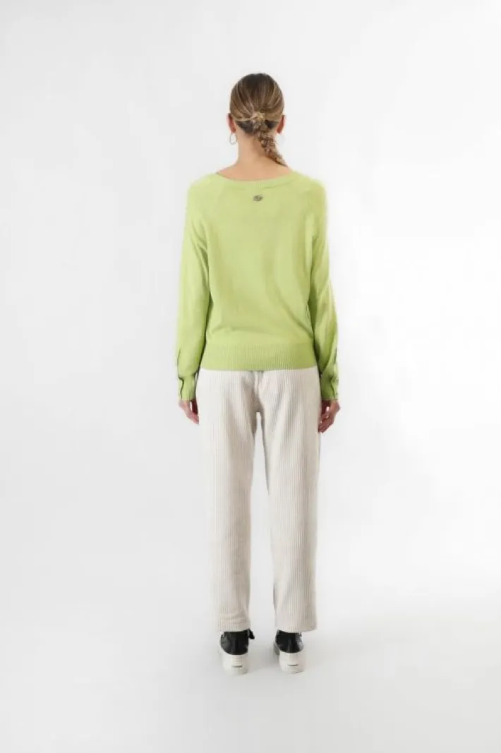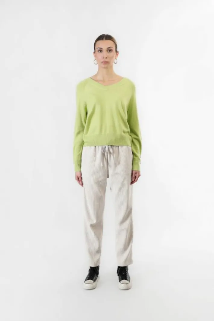 Maglia con collo a “v” realizzata in filato misto cashmere. perfetta per essere indossato con qualunque abbinamento.