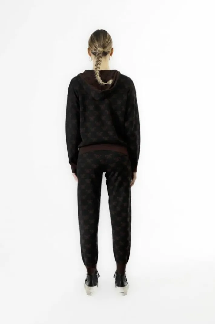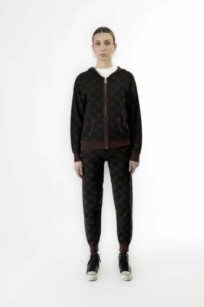 Maglia con zip e cappuccio n caldo e morbido filato mistolana. punto maglia rasato con lavorazione logo jacquard. capo p…
