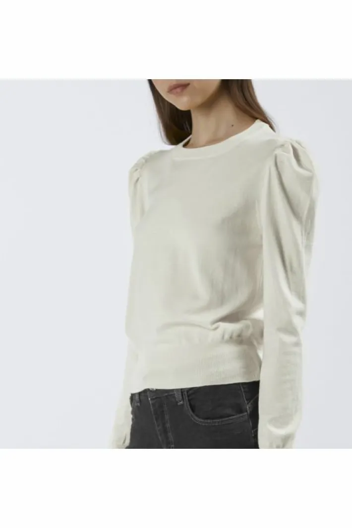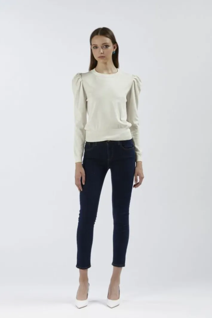 Maglia basica girocollo a maniche lunghe con increspatura alle spalle. realizzata in filato misto viscosa.