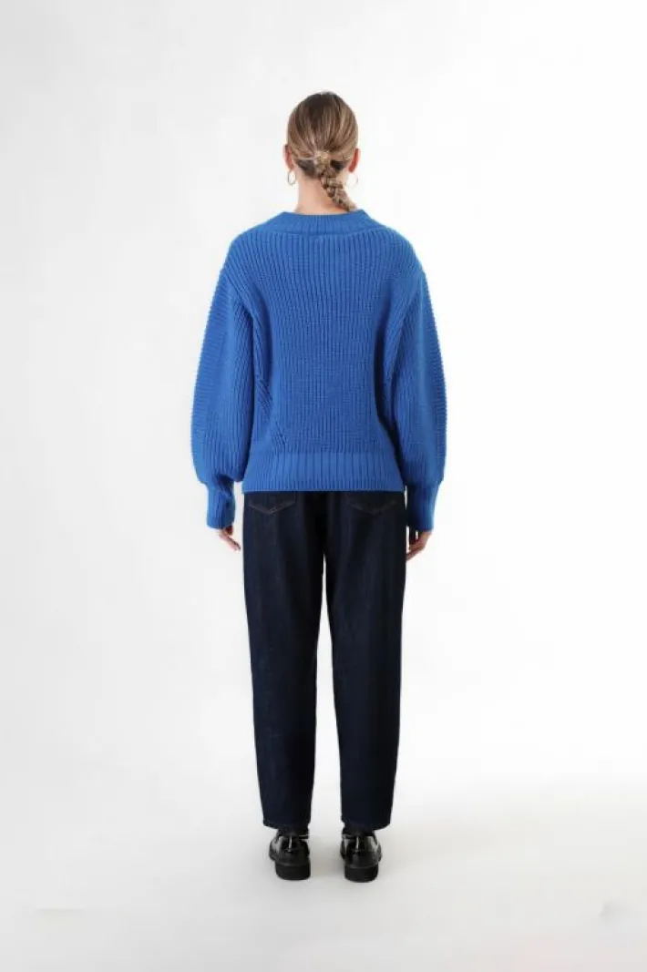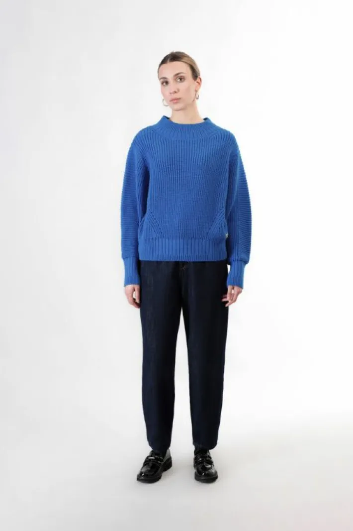 Maglia girocollo in filato misto lana con lavorazione a coste. perfetta per essere indossata con qualunque abbinamento.